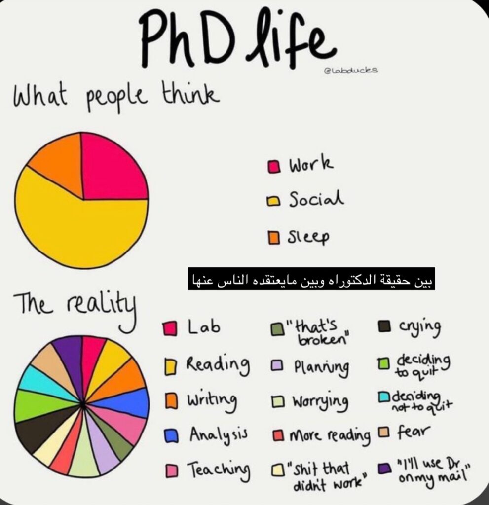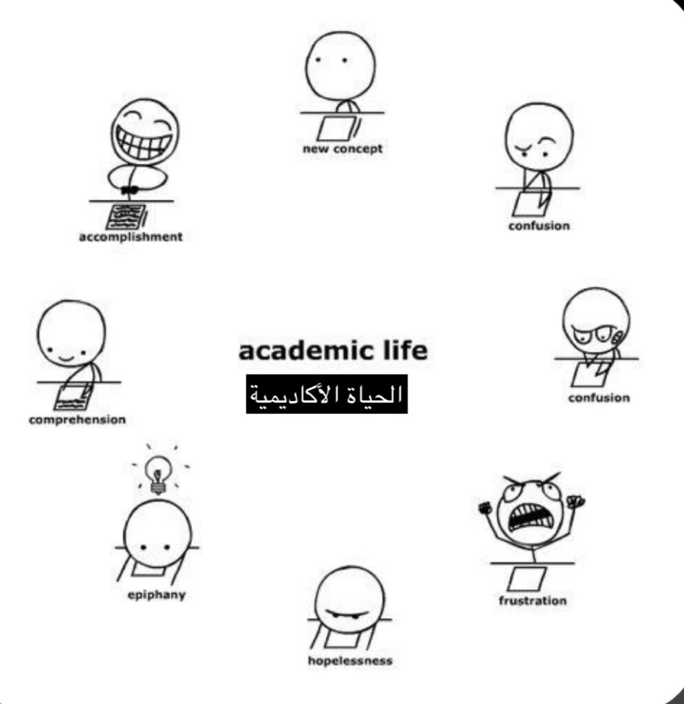 بعضًا من الرسوم الكوميدية التي تصوّر حياة الأكاديمي وطالب الدكتوراه.